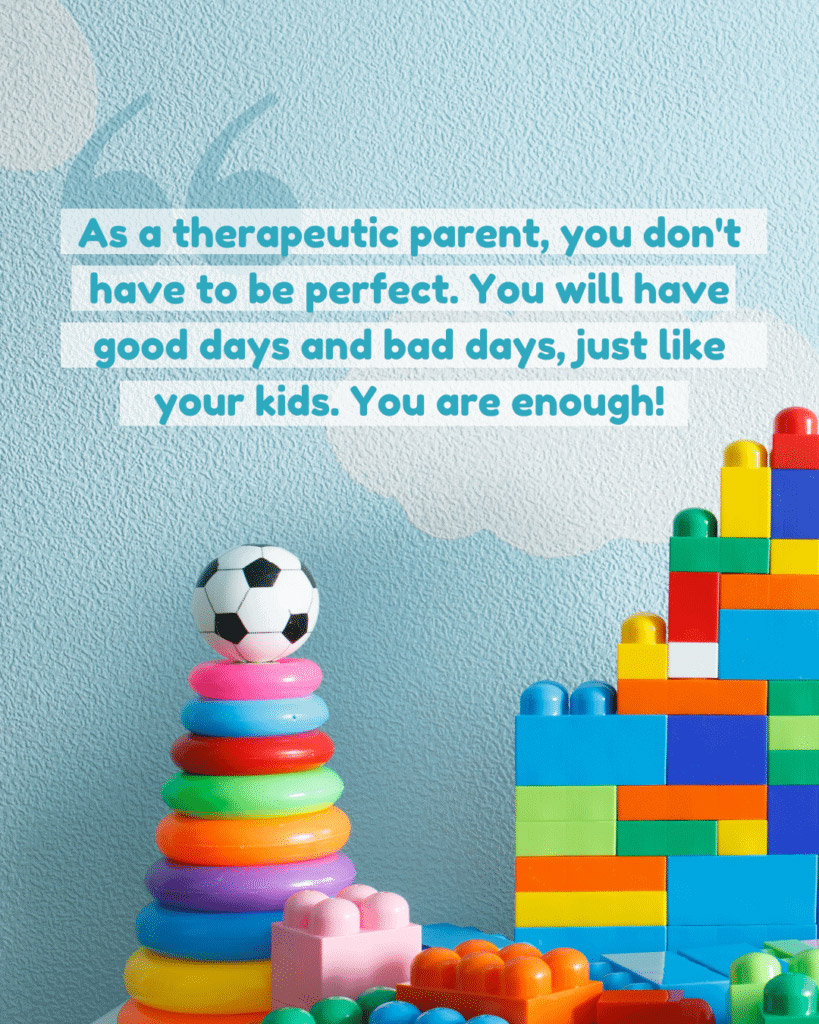 - Surrender to the idea of failure. In parenting, sometimes you will get it right; sometimes you won’t, so what. You are still doing the work of being an excellent therapeutic parent.