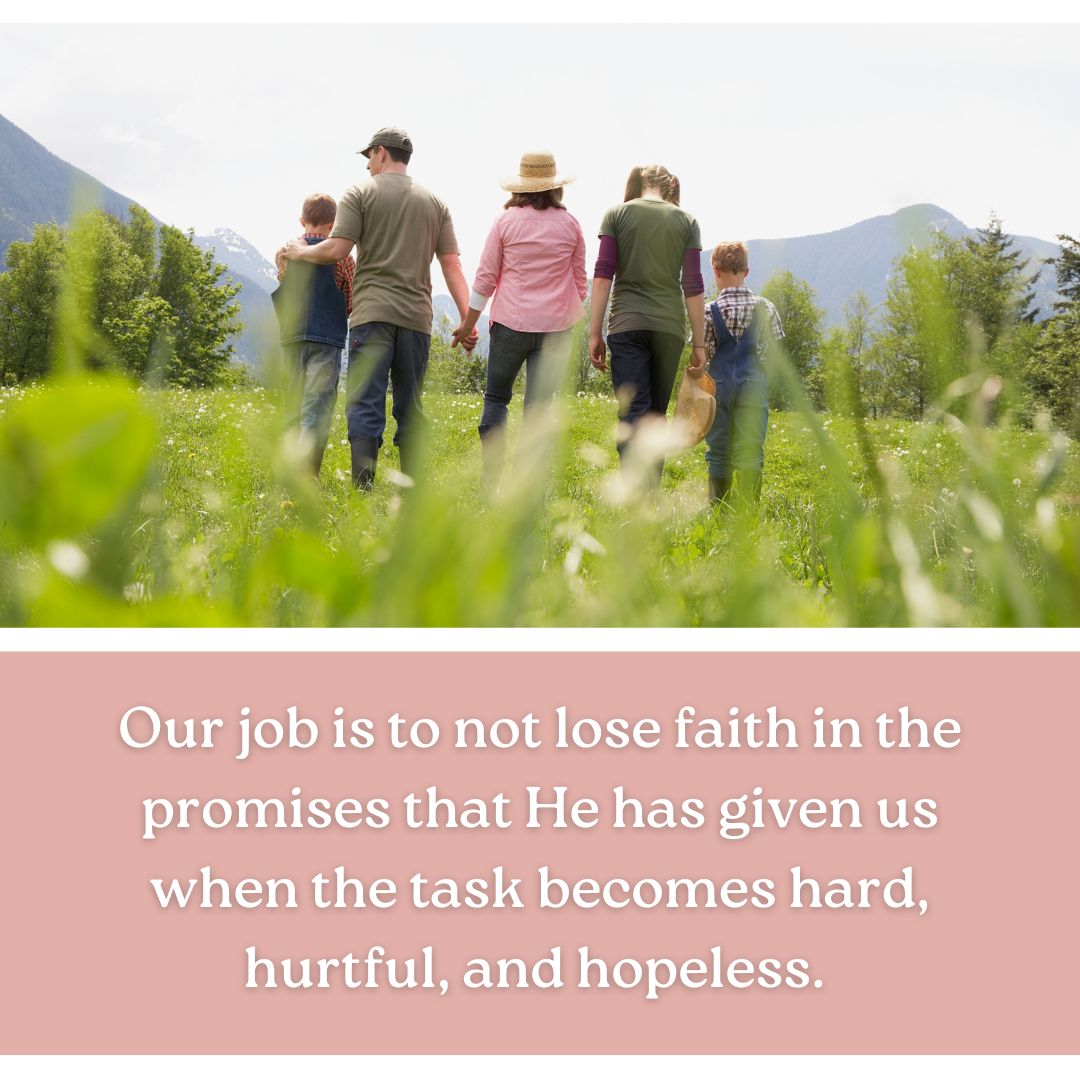 Like the Hebrew people, we would soon learn that although God’s promise is true and we will one day have all of those things in our family, the road of obedience and faith along the way will require much more of us than we could ever imagine. It’s beautiful when God gives us a promise and calls us into a mission and purpose for Him. There’s so much hope as we step out in faith. Our job is to not lose that hope and trust in the promises that He has given us when the task becomes hard, hurtful, and hopeless. As we walk through the next ten days together, I pray that you learn to stand firm on the promises God has given you for your family, especially in the midst of the battle.