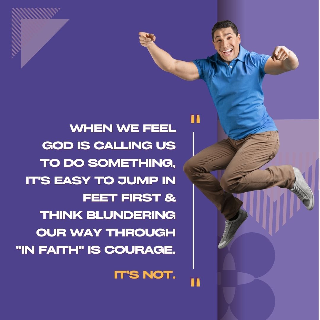 I have a good friend who is famous for saying, “Suck it up buttercup.” When we feel that God is calling us to do something, it’s easy for us to jump in feet first and think that blundering our way through “in faith” is courage. It’s not.