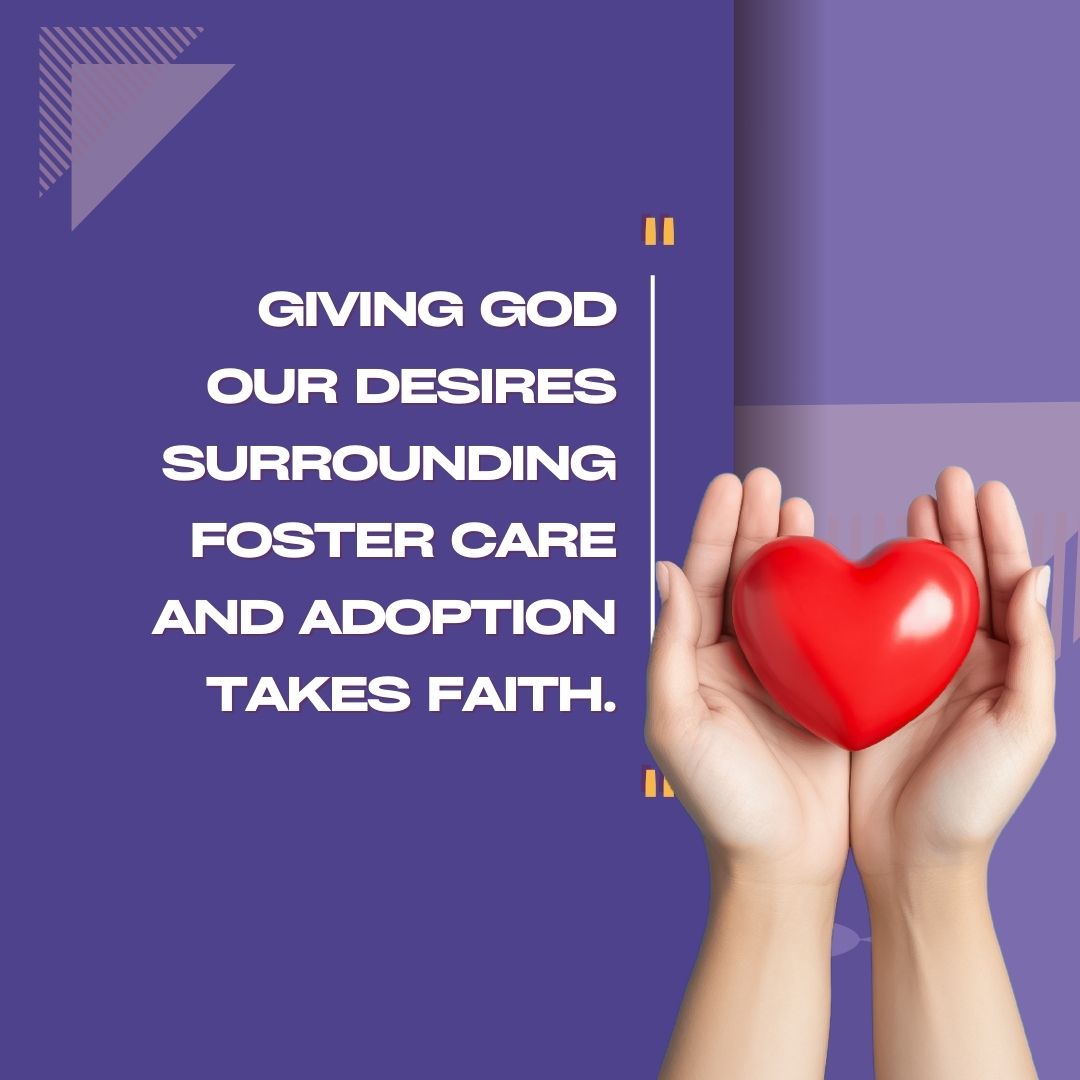 Hebrews 11:1 has always been one of my favorites. It has always assured me that the desires of my heart would be satisfied in the Lord: The desire for a child, a second child, a large close-knit family, a bunch of grandkids. Giving God our desires surrounding foster care and adoption takes faith.