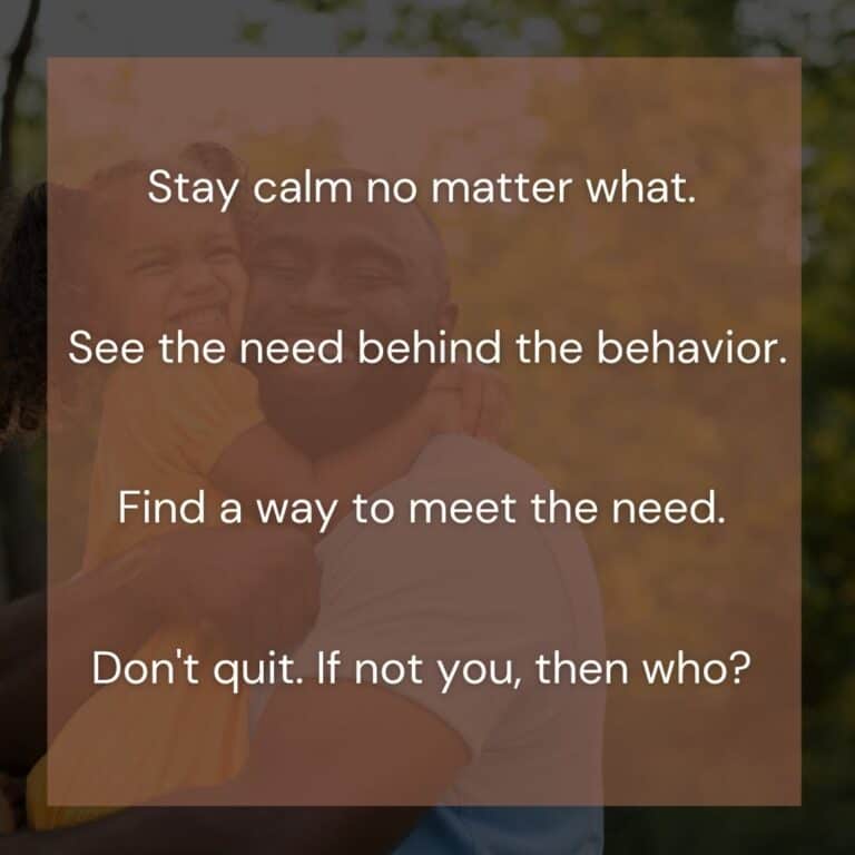 One example that sticks out in my is mind is food hoarding. Before I understood the need behind food hoarding—food security—I exasperated one of my kids over this scenario. Ashamedly, I wasn’t looking for the “why” behind the behavior. I just wanted the behavior to stop. What happened instead? My child would shut down, not talk to me, and feel shame. My child was looking for safety, and I unintentionally shattered it.