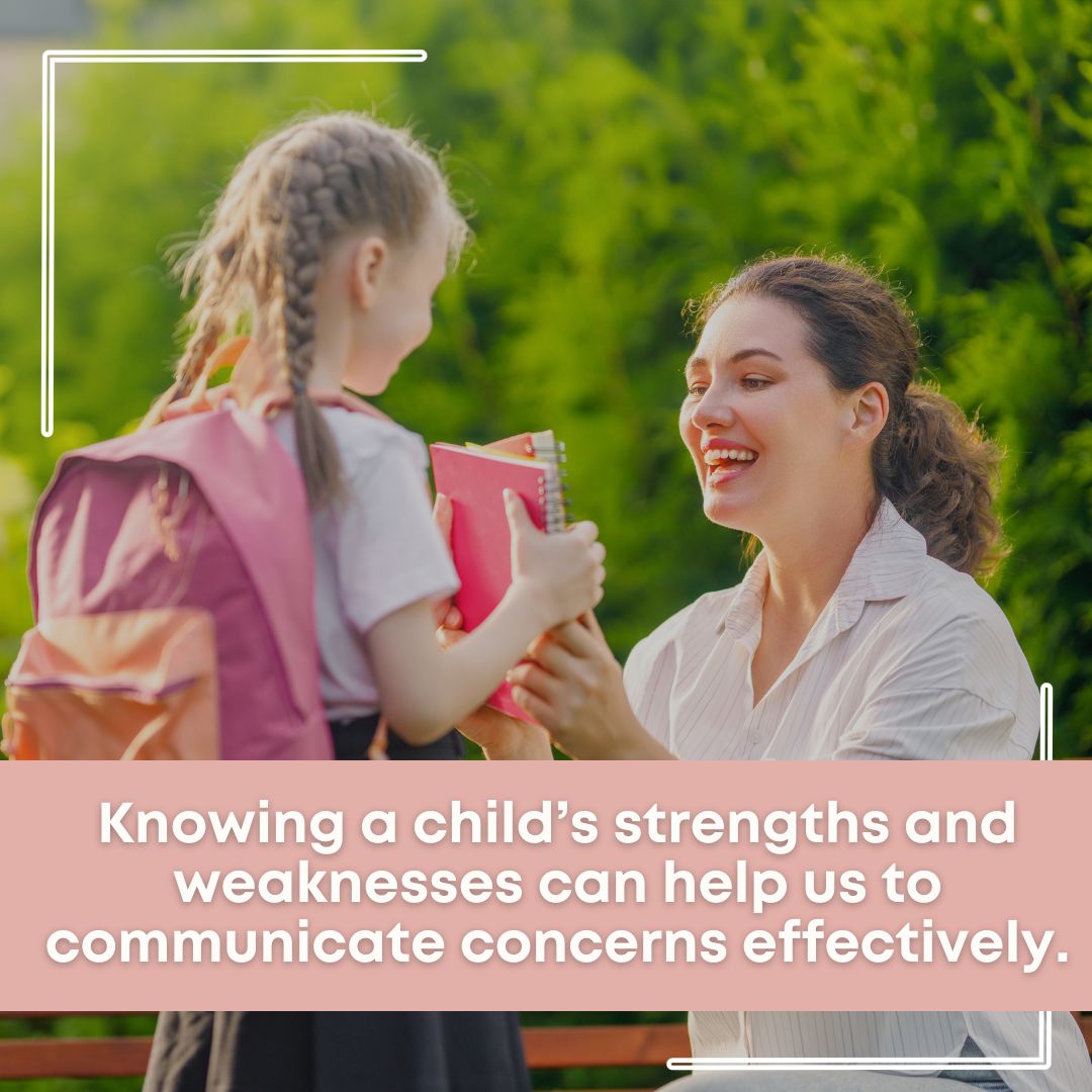 Let’s chat about where to begin. Take a close look at your child’s specific challenges and difficulties. Sometimes, this may take a little detective work on your part and on the part of others who interact regularly with your child. Resources can include pediatricians, data from former schools, and other professionals.