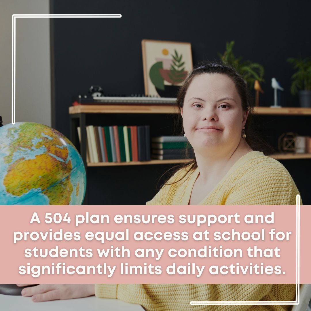 At this point, if you are saying, “I know we need some support, but my child doesn’t fit the criteria for an IEP,” a 504 plan is worth exploring. A 504 is a section in the Rehabilitation Act of 1973 to stop discrimination against people with disabilities. It is a civil rights law.